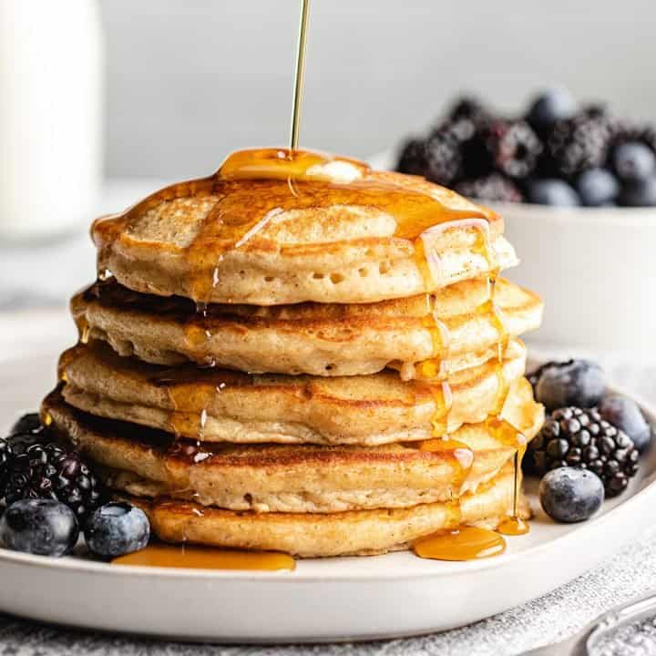 Additionally, they do not call for any vinegar, cornstarch, or a lot of butter. The ingredients for these traditional flapjacks are flour, buttermilk, baking soda, vanilla, salt, and a single egg.